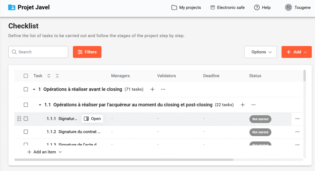 Once on the Checklist, click on the “open” icon for the relevant task: