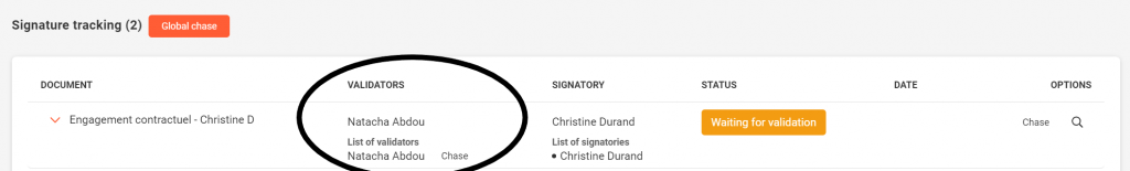 Go to the bottom of your project Settings, in the Signature tracking you can chase your validators.