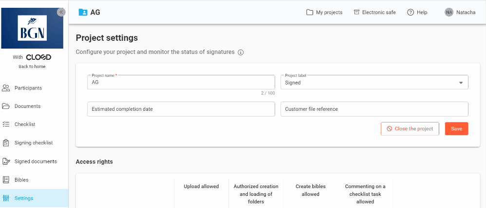 Closing a Project instantly deactivates access to the Project for all its Participants (including yours).