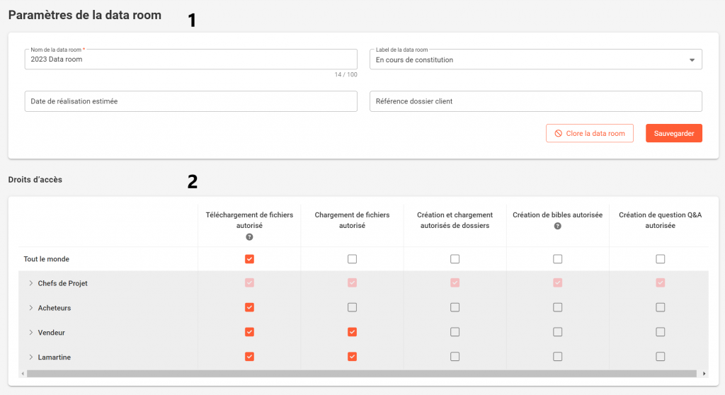 1. Paramètres de la Data room