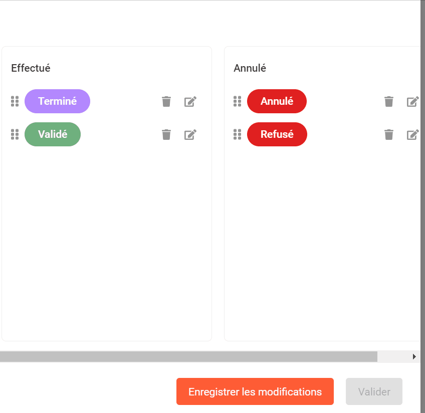 Pour supprimer un statut, cliquez sur l’icône 🗑️.