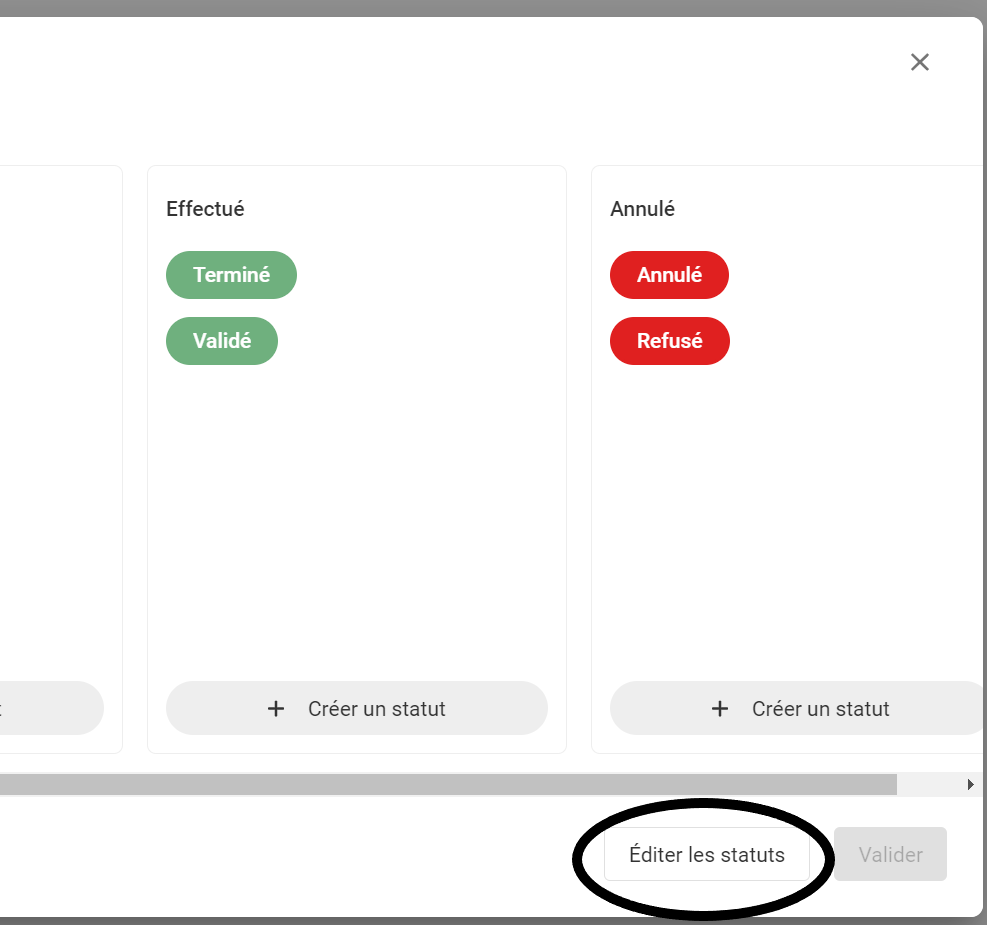 Etape 2 : éditer, déplacer ou supprimer un statut