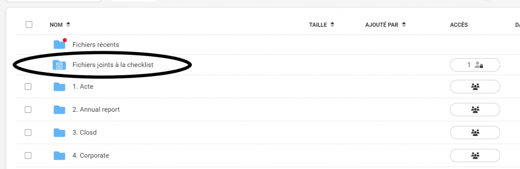Etape 1 : Cliquez sur le dossier fichiers joints à la checklist