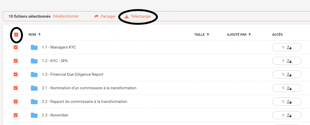 - Sélectionnez vos fichiers en cochant les cases à gauche de leur nom
