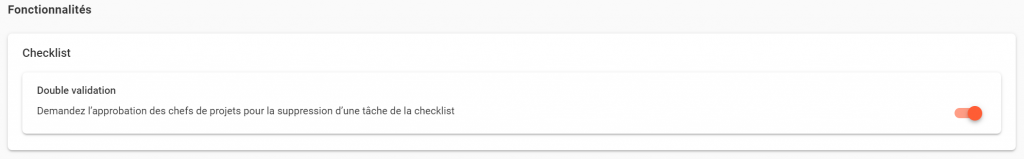 Etape 1 : Activation de la double validation sur la page Paramètres du projet