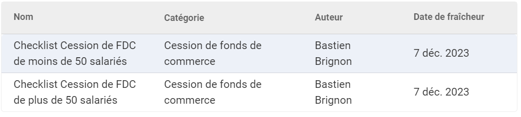 Cession de fonds de commerce