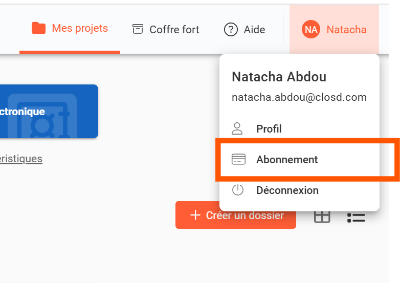 Etape 1 : Passez votre souris sur votre Prénom en haut à droite puis cliquez sur Abonnement